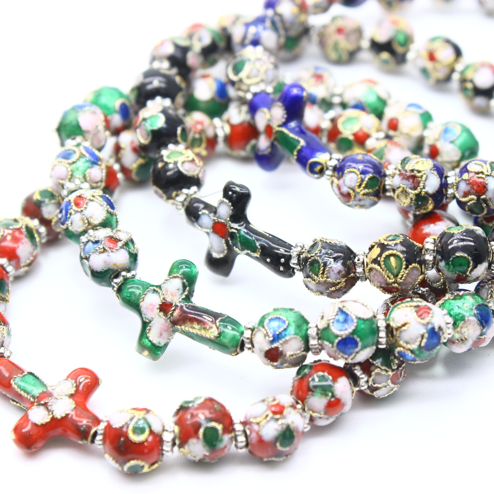 純手工景泰藍珠手串串珠十字架手鏈手環(huán)(彈力繩)bracelet