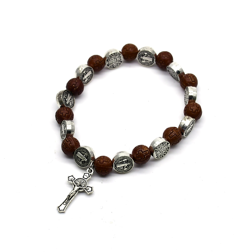 3條/套 跨境電商外貿(mào)手工圓珠串珠圣本篤十字架手鏈?zhǔn)执椘诽籽b