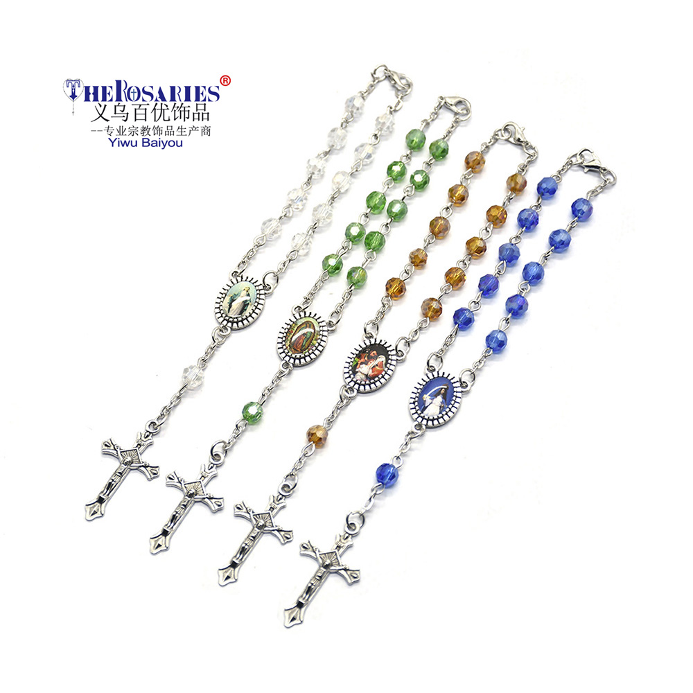 十字架手鏈外貿(mào)電商四色水晶念珠手鏈飾品某教祈禱珠生產(chǎn)商