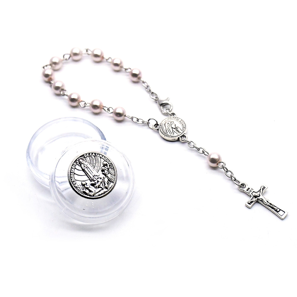 (銀色白K)車(chē)掛十字珠念珠洗禮珠十字架手鏈Rosary bracelet