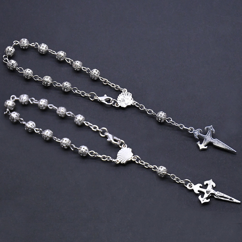 盒裝6mm漏空珠念珠手鏈合金十字架手串手環(huán)祈禱珠Rosary bracelet