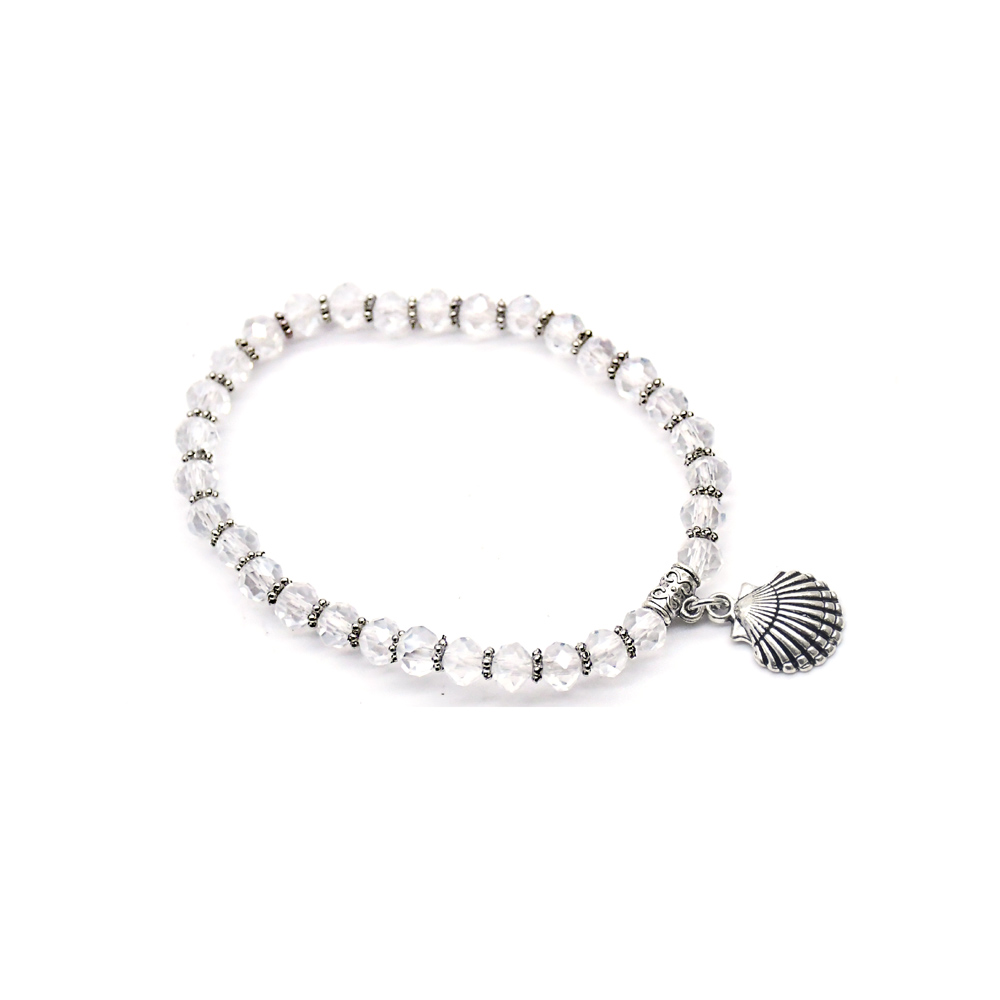 水晶珠貝殼手鏈?zhǔn)旨苁サ貋喐顼L(fēng)跨境十字架念珠手串手環(huán)