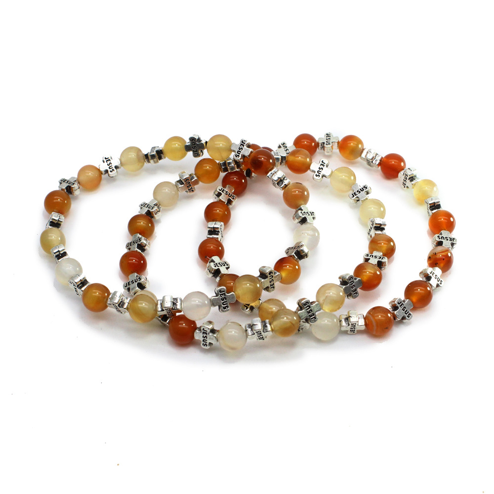 4MM天然石印度瑪瑙十字架手鏈