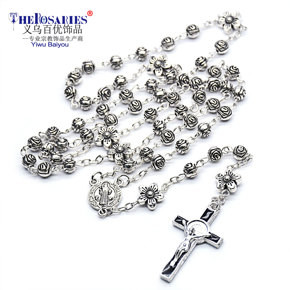 復(fù)古金屬玫瑰花念珠項(xiàng)鏈?zhǔn)旨茼?xiàng)鏈宗教禮品贈(zèng)品