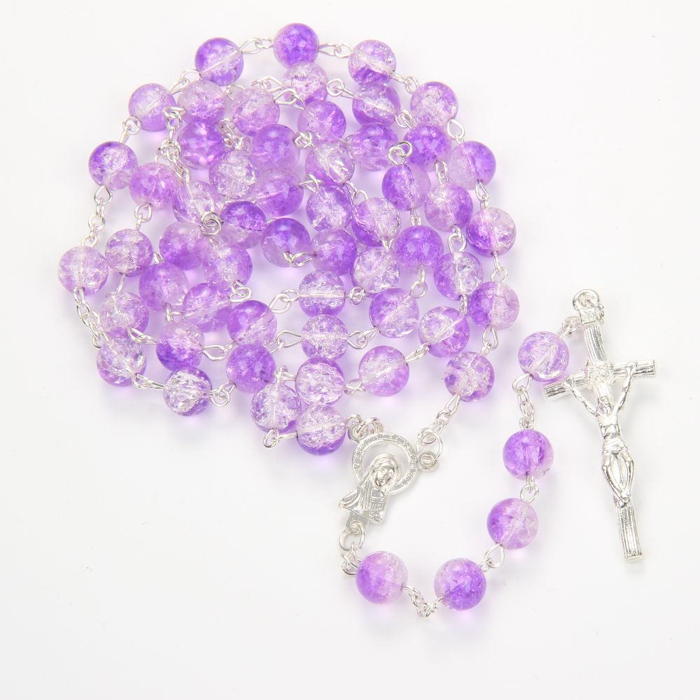 念珠飾品批發(fā) 十字架項(xiàng)鏈塑料玫瑰珠項(xiàng)鏈