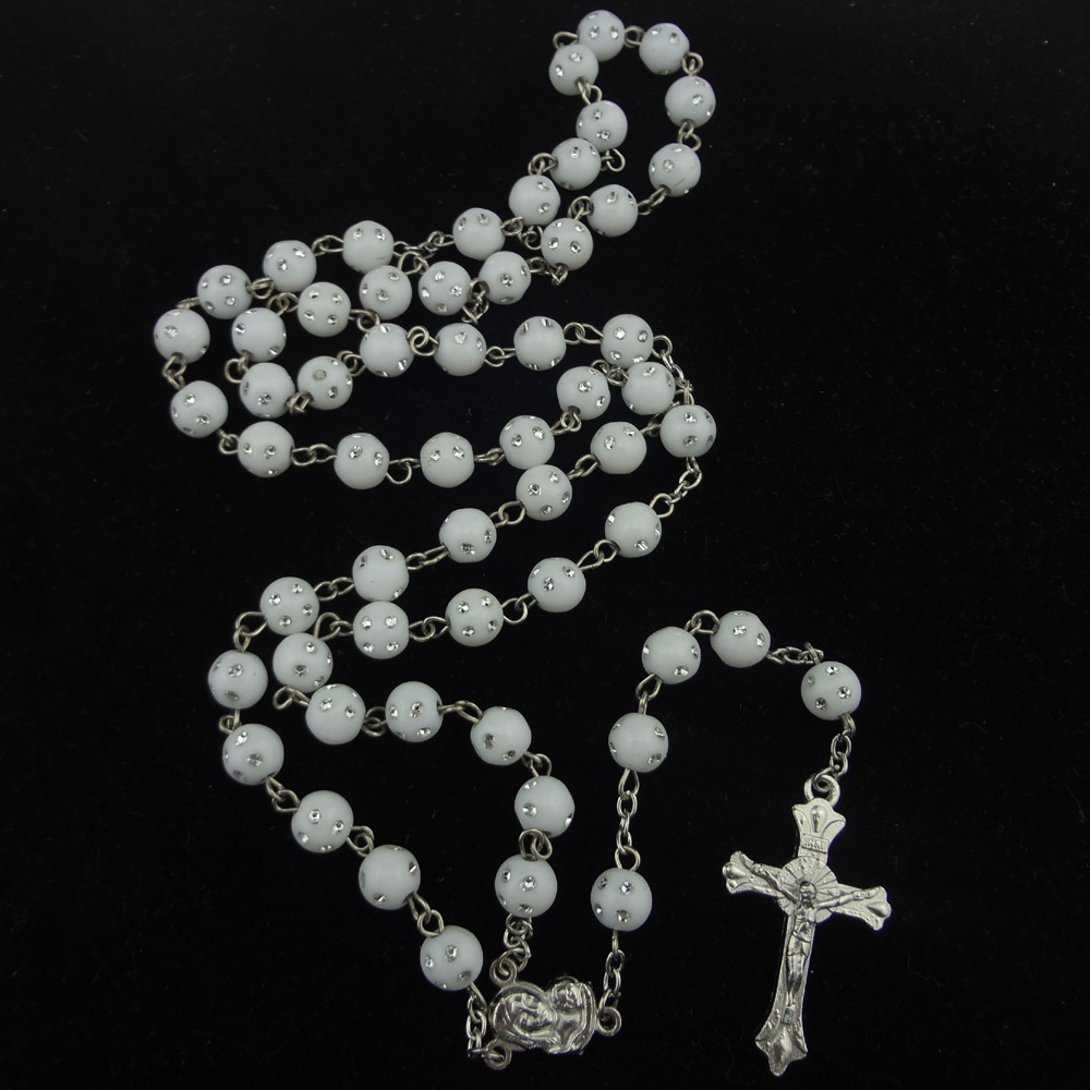 念珠飾品批發(fā) 十字架項(xiàng)鏈塑料玫瑰珠項(xiàng)鏈