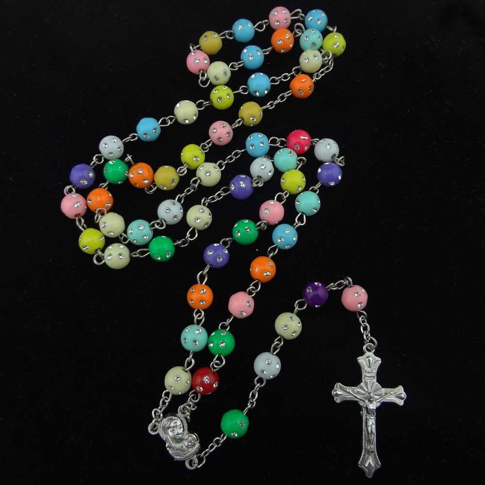 夜光十字架項(xiàng)鏈連線珠 塑料發(fā)光念珠項(xiàng)鏈(顏色隨機(jī),按12條倍數(shù)拍)