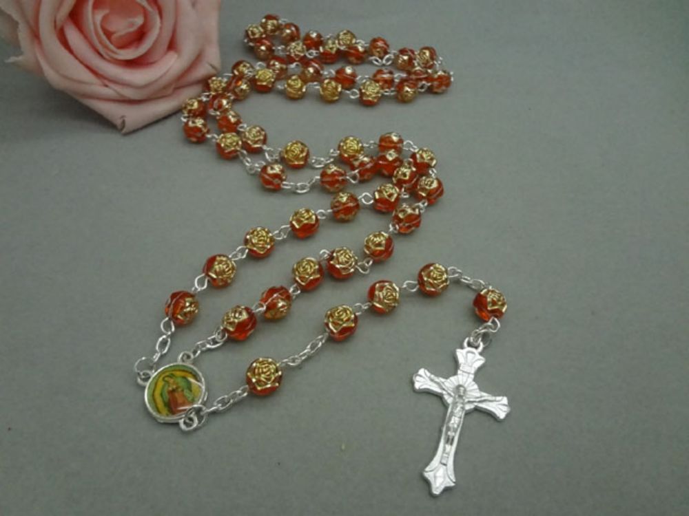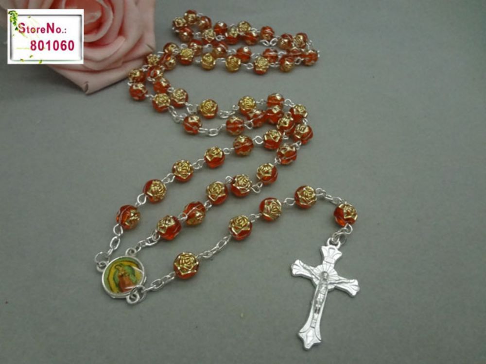 念珠飾品批發(fā) 十字架項(xiàng)鏈塑料玫瑰珠項(xiàng)鏈