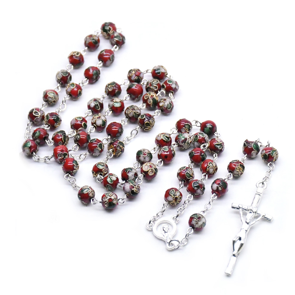亞馬遜源頭工廠8mm景泰藍(lán)十字架念珠項(xiàng)鏈高端禮品贈(zèng)品
