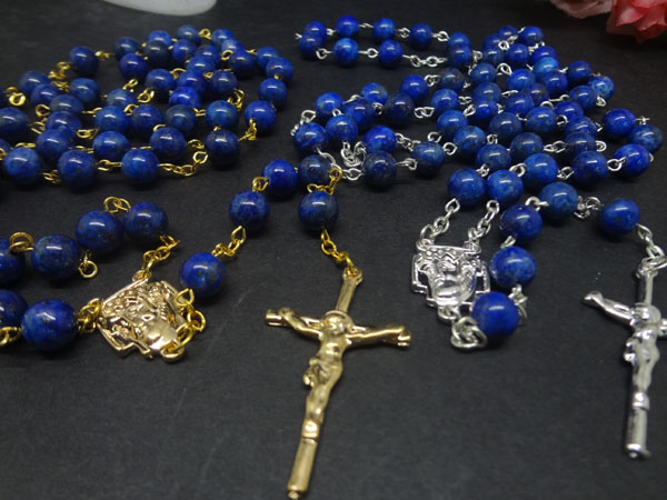 電商跨境貨源天然石青金十字架念珠項(xiàng)鏈用品批發(fā)