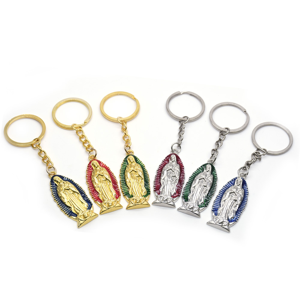 跨境專(zhuān)供彩色滴油瓜德盧佩圣母鑰匙扣掛件圈環(huán)飾品禮品