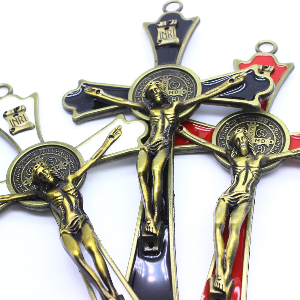 (古青銅+紅)9.2*19cm金屬十字架掛件辦公室家用擺件飾品