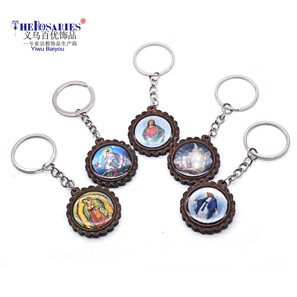 跨境專供彩色滴油瓜德盧佩圣母鑰匙扣掛件圈環(huán)飾品禮品