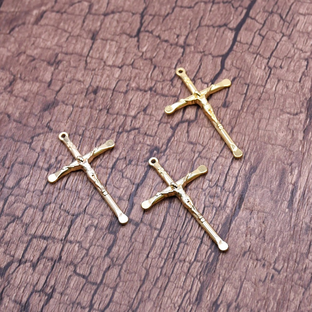 (10個每包)金色念珠項鏈十字架DIY飾品吊墜配件