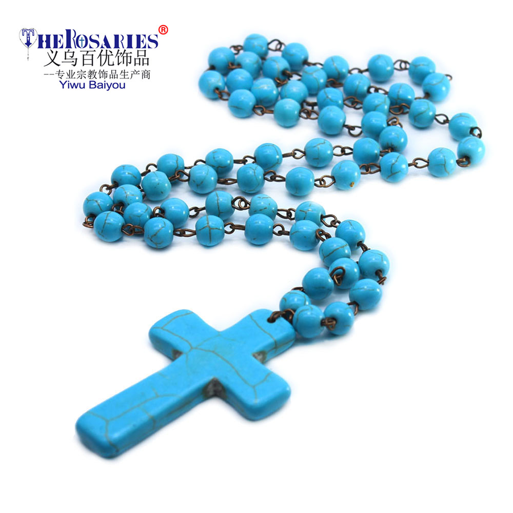 十字架吊墜項鏈毛衣鏈松石珠子彎針批發(fā)