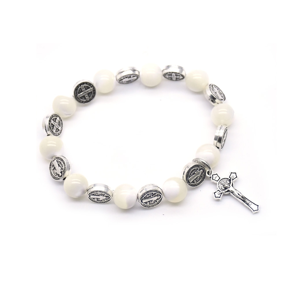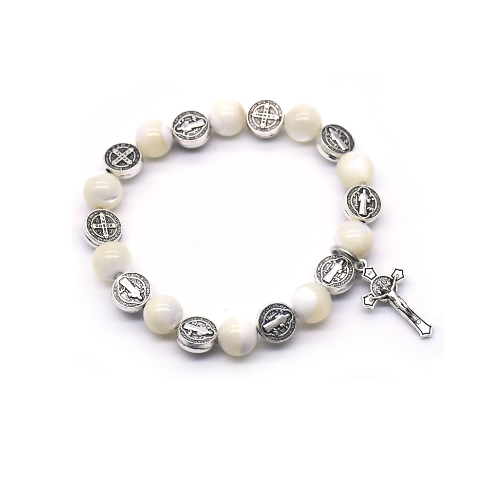 圣本篤手鏈純潔色貝殼馬蹄螺珠子串繩十字架飾品手鏈