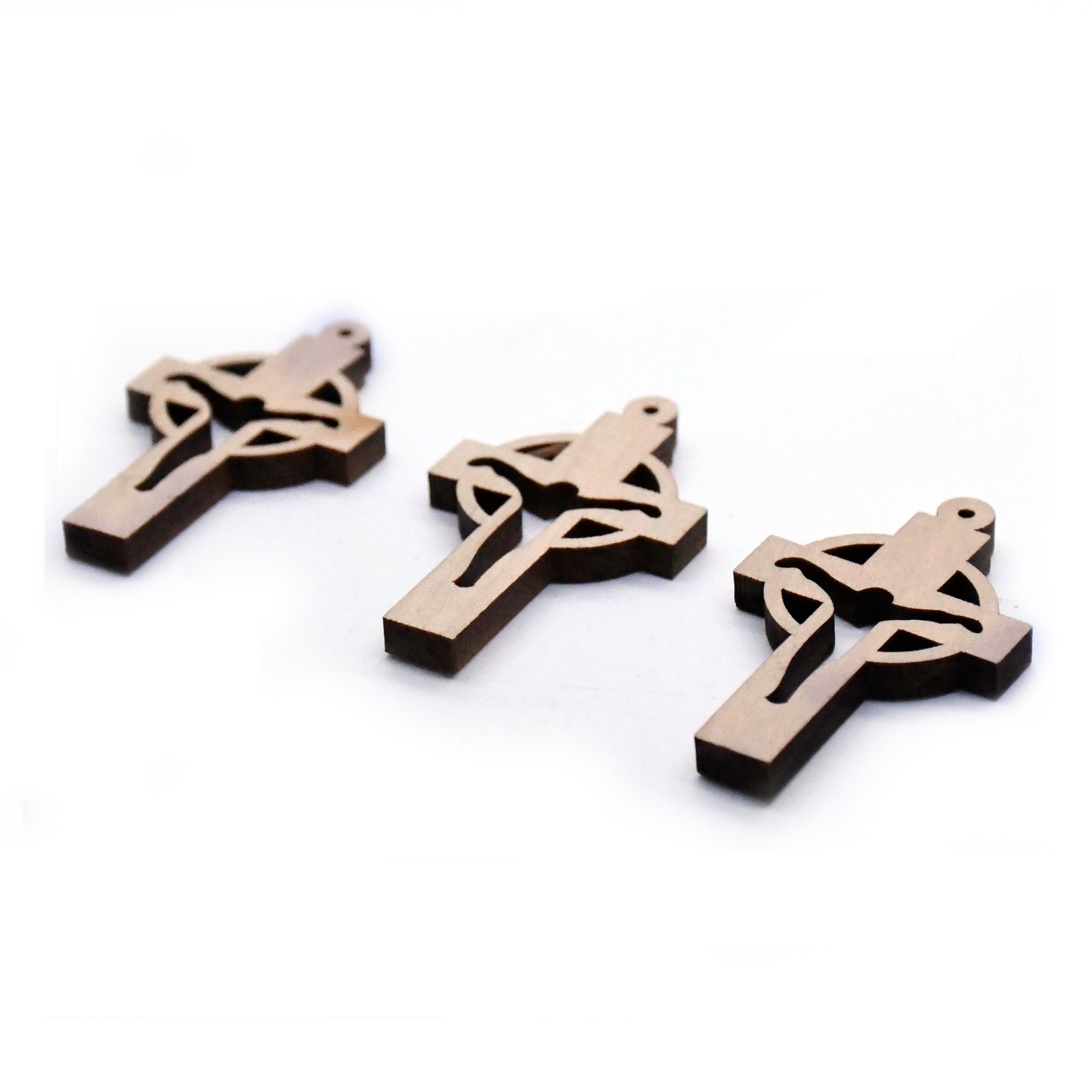 (10個每包)激光切割木色木頭十字架DIY飾品吊墜飾品配件