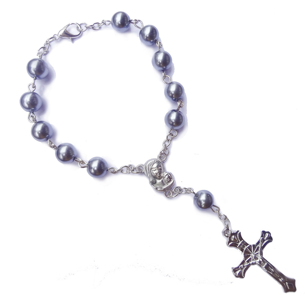 (銀色白K)車掛十字珠念珠洗禮珠十字架手鏈Rosary bracelet