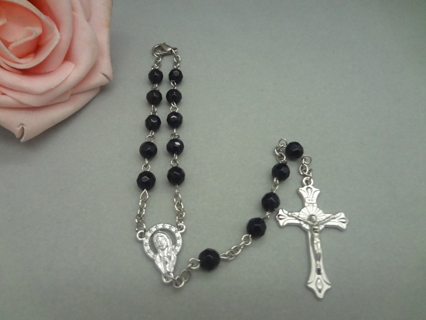 (銀色白K)車掛十字珠念珠洗禮珠十字架手鏈Rosary bracelet