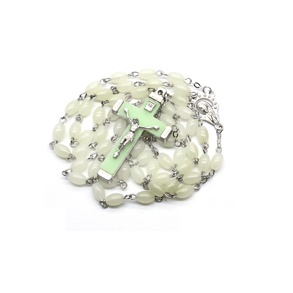 夜光十字架項(xiàng)鏈連線珠 塑料發(fā)光念珠項(xiàng)鏈(顏色隨機(jī),按12條倍數(shù)拍)