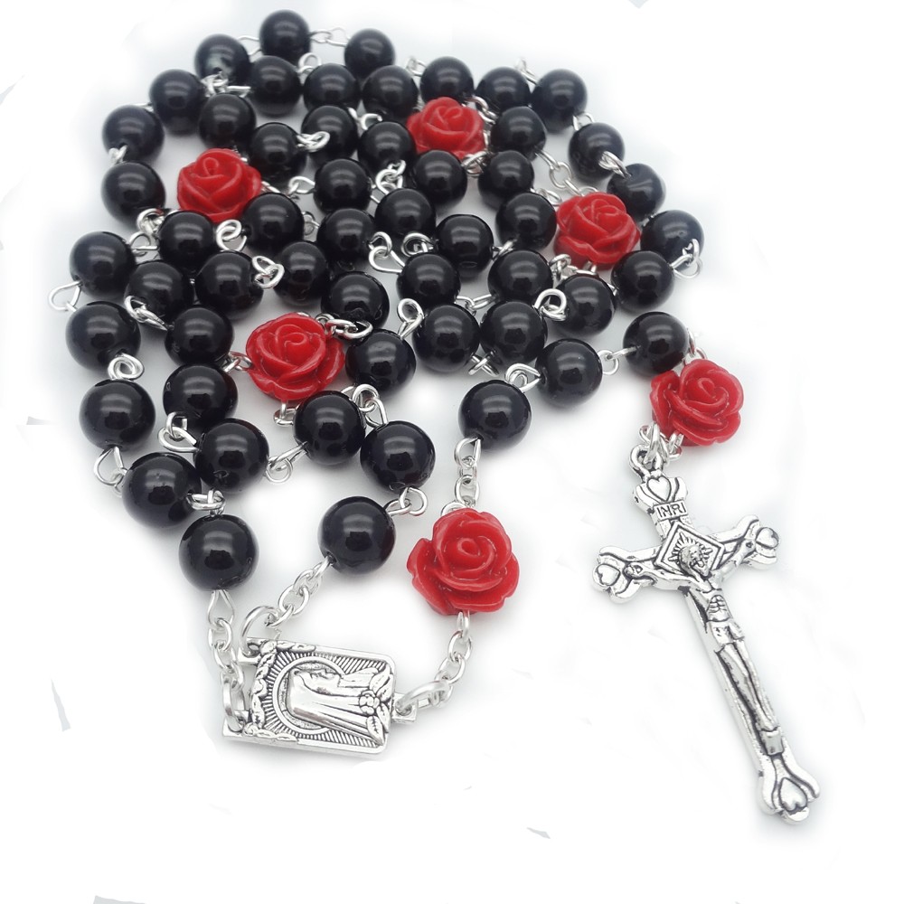 紅珠十字架念珠項(xiàng)鏈祈禱珠外貿(mào)電商十字架用品批發(fā) 手編十字架念珠項(xiàng)鏈