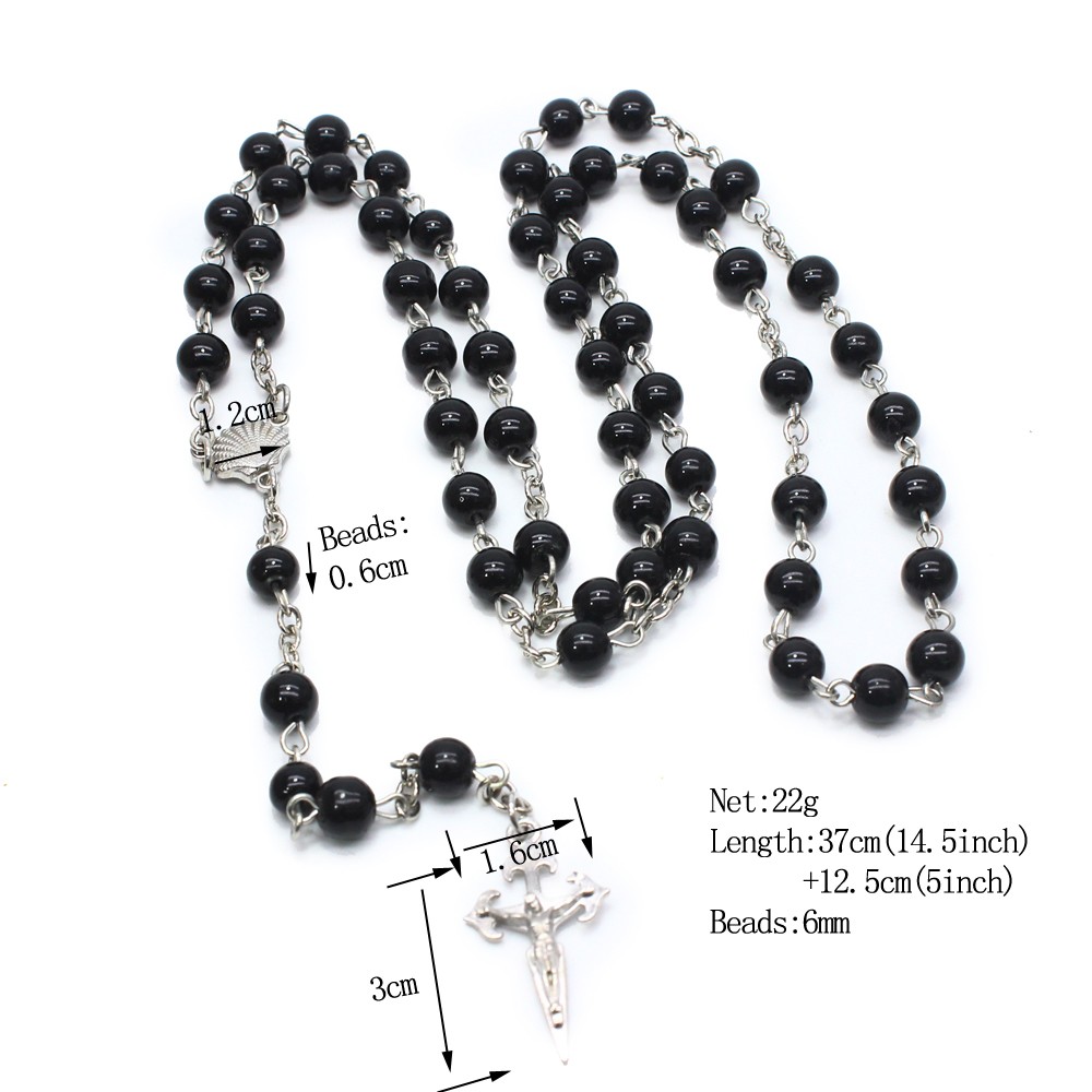 (咖色)Rosary念珠飾品項鏈仿陶瓷珠十字架項鏈