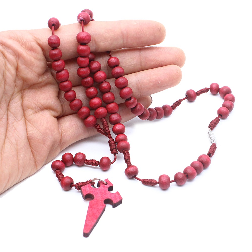 紅珠十字架念珠項鏈祈禱珠外貿電商十字架用品批發(fā) 手編十字架念珠項鏈