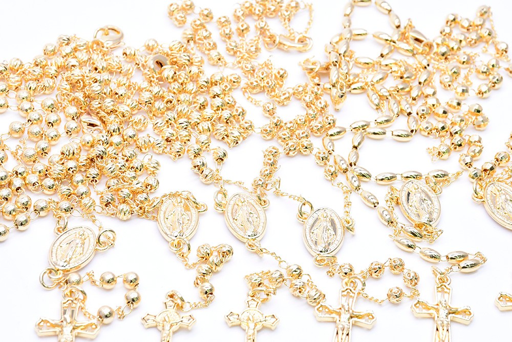 金銀雙色6mm銅珠念珠十字架項(xiàng)鏈祈禱珠跨境電商十字架用品批發(fā)