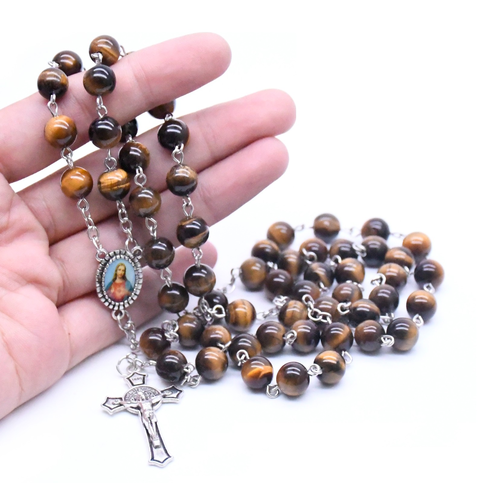 圣誕贈(zèng)品天主教基督教古青銅歐美復(fù)古圖畫石十字架飾品念珠項(xiàng)鏈