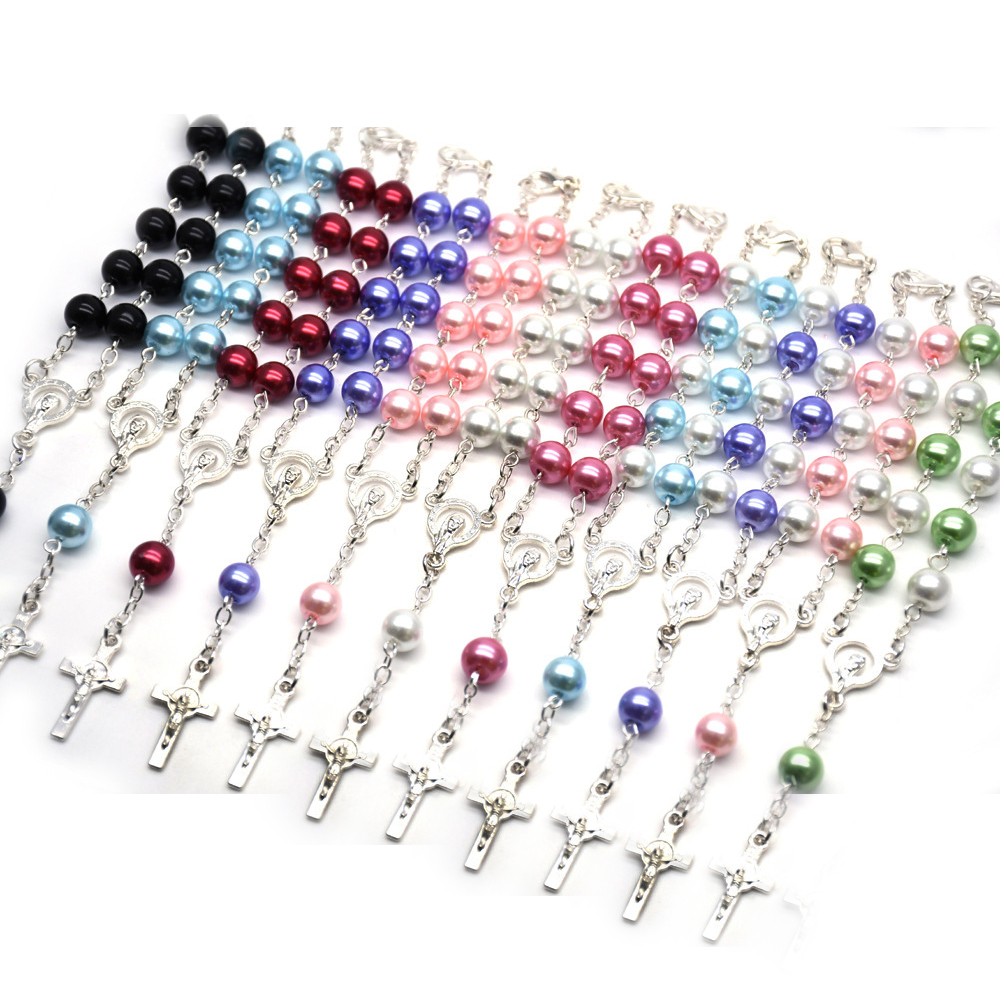 外貿(mào)貨款十字架手串珍珠念珠手鏈飾品婚禮祈禱珠手環(huán)