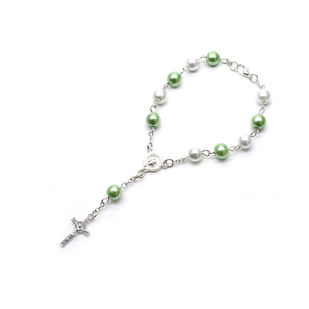 外貿(mào)貨款十字架手串珍珠念珠手鏈飾品婚禮祈禱珠手環(huán)